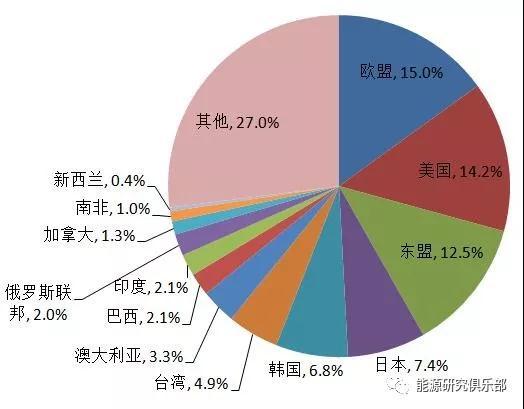 除了領先的研發(fā)和制程技術,降低貿易摩擦負面影響的措施之一就是不過度依賴單一市場的全球戰(zhàn)略。對中國而言,2017年中國經(jīng)濟的復蘇很大程度上與出口的改善有較大關系,中美貿易戰(zhàn)可能影響中國出口增速下滑,影響經(jīng)濟總量。但是,歐洲、日韓、東盟也處于復蘇狀態(tài),尤其可以增加對歐盟、東盟的進出口來緩釋來自美國的壓力。相關能源企業(yè)應主動減少對美國市場的依賴,開拓更廣泛的國際市場,提高對金磚國家、“一帶一路”相關國家能源進出口及投資比重。