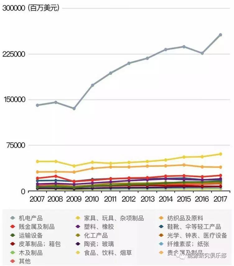 據(jù)美商務部分析,2017年美國對華貿易出口增加148億美元至1304億美元,主要是原油和民用飛機引擎及部件;對華進口增加430億美元至5056億美元,主要是手機、家庭用品和電腦等。