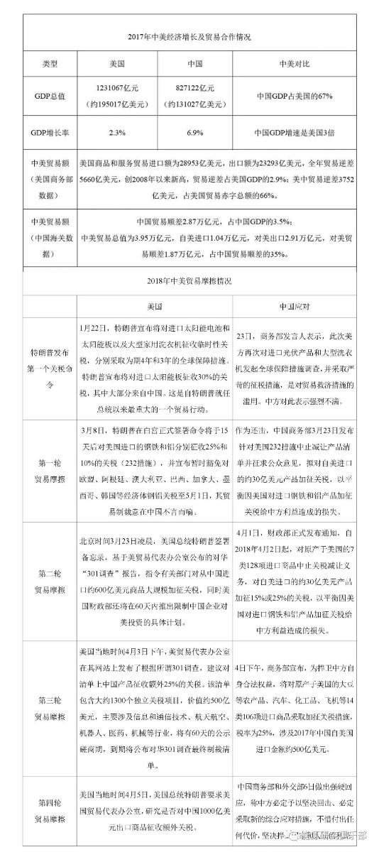 表1 2017~2018年中美經(jīng)濟情況及貿易摩擦情況