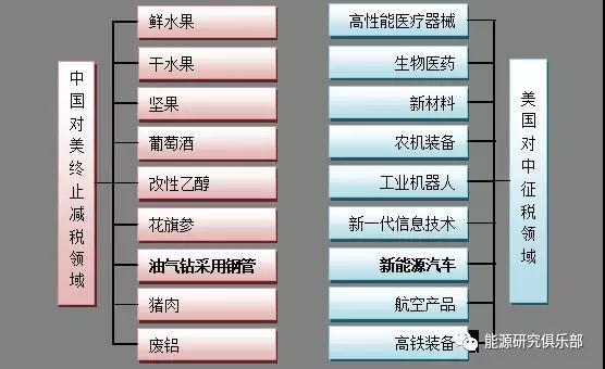就能源領域而言,針對美國對我國鋼鐵加征25%的關稅而采取應對措施,中國相應對出口美國鉆探石油及天然氣用的各種型號的套管、導管、鉆管及無縫鋼管(均為鋼鐵制品,共33項,占總項目數(shù)超四分之一),中止關稅減讓義務,并在現(xiàn)行適用關稅稅率基礎上加征15%的關稅,這將對美國油氣勘探開采設備的采購造很大影響,直接推高美國油氣勘探開采設備的成本,從而增加美國油氣開發(fā)成本。不過,目前由于中國對其加征的關稅僅15%,且金額相對較小,對整個油氣領域的影響有限。