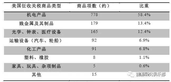 美國征稅清單還需確認落地執(zhí)行,目前看能源行業(yè)直接受損很少,電力設備行業(yè)受影響較大,其中涉及機電產(chǎn)品778項,占比58.4%,但對電力行業(yè)影響有限。被納入美國征稅清單的包括電氣設備、風電設備、核反應堆、電動汽車零部件、電池等。具體影響如下: