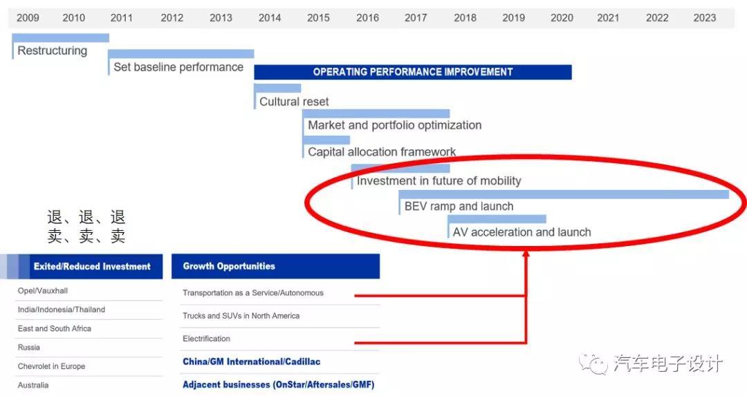從大的方面來看,往不怎么賺錢的市場(chǎng)退出,裁掉不怎么賺錢的產(chǎn)品線,這些都會(huì)發(fā)生。主要的關(guān)注點(diǎn),還是在電動(dòng)汽車和自動(dòng)駕駛。這里的做法有兩種,一種是類似大眾集團(tuán),未來要做幾百萬(wàn)的電動(dòng)汽車,或者按照通用暫時(shí)的做法,把電動(dòng)汽車和自動(dòng)駕駛運(yùn)營(yíng)進(jìn)行整合,然后進(jìn)行延展,獨(dú)立運(yùn)行。甚至自動(dòng)駕駛不掛雪佛蘭的標(biāo),將來以定制化的形式來做。