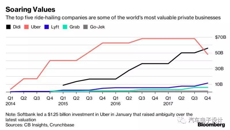 軟銀成為主角,年底之時(shí),它完成三起大宗投資交易:向印度的士打車公司Ola投資11億美元,購(gòu)入U(xiǎn)ber約15%的股份,12月份滴滴融資40億美元,軟銀參與投資。軟銀在滴滴出行占股20%,在Grab占股30%,如今在Uber也有了15%的股份。打車公司也都搖身一變,成為世界上估值最高的私營(yíng)公司。截止2018年1月,前5大私營(yíng)打車公司的總估值已經(jīng)超過1290億美元,比通用汽車、福特的總市值還要高。