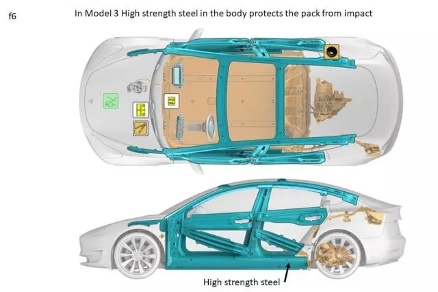 但是在 Model 3 上,高強度鋼的使用率大大提高。而且最主要的地方還是分布在車身以及安置電池的部分。