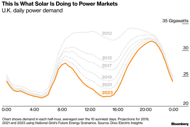 預(yù)計到2021年,英國太陽能發(fā)電將增長到16吉瓦,到2023年可達(dá)18吉瓦,而目前為13吉瓦。增長的3吉瓦電量相當(dāng)于英國全部核電每周日下午發(fā)電數(shù)小時的發(fā)電量。