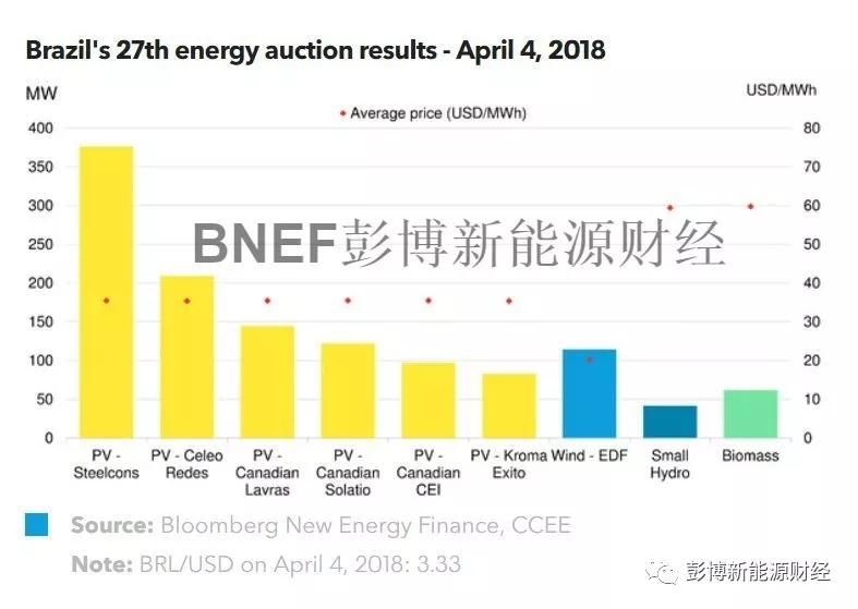 4個風電項目的平均成交價也僅為67.6雷亞爾/MWh(20.3美元/MWh),創(chuàng)下該國歷史新低。