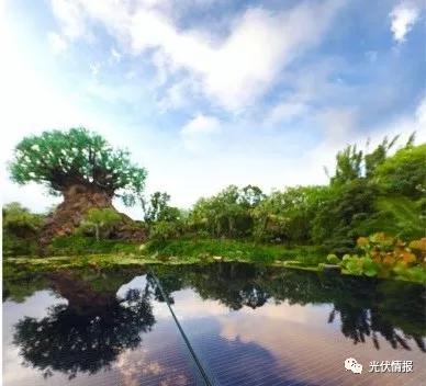 ▲ 放在生命之樹(shù)(Tree of Life)前的太陽(yáng)能板。(Source:Disney Parks Blog)