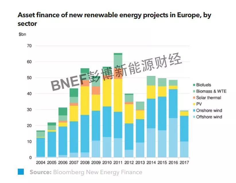 2017年,歐洲九大領(lǐng)軍電力企業(yè)廠的可再生能源投資總額