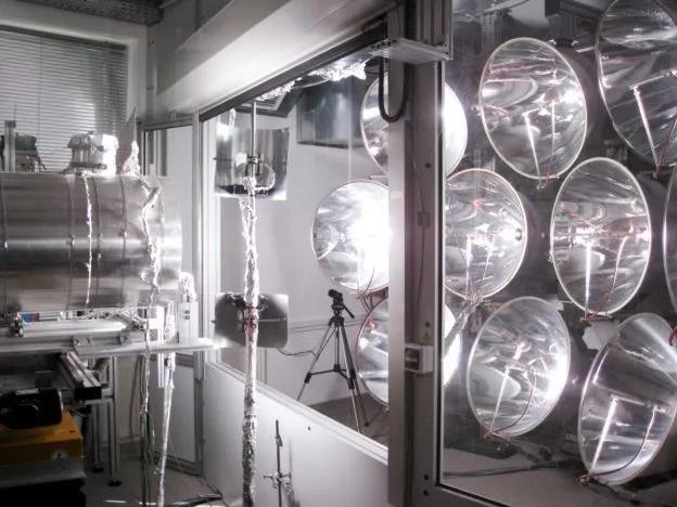 為了測(cè)試該系統(tǒng),德國(guó)航太中心利用氙氣燈來(lái)模擬太陽(yáng)熱能,而該機(jī)器可以在850°C的溫度運(yùn)行并擁有5kW的功率。雖然產(chǎn)生的電量相當(dāng)?shù)?,但這項(xiàng)測(cè)試與研究目標(biāo)是反應(yīng)器的可行性,并希望在為來(lái)可用于商業(yè)用途。