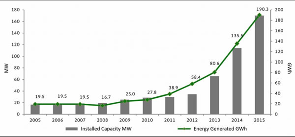 Historic progress of installed PV solar capacity and generation in Mexico. Source: SENER. “Renewable Energy Prospective [Mexico]”