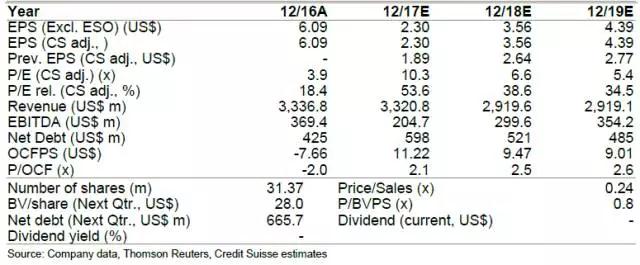 基本的意思就是,CS的預(yù)測(cè)是2017晶科每股收益為2.3,2018年每股收益為3.56,2019年收益為4.39,而其認(rèn)為晶科的PE對(duì)應(yīng)2017年應(yīng)該為10.3倍,2018年為6.6倍,2019年為5.4倍。
