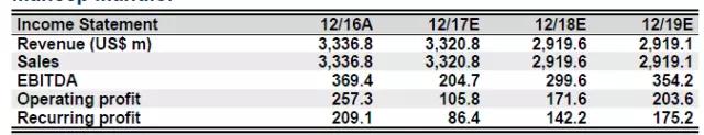 CS預(yù)期2017年,2018年,2019年的收入相比2016年都沒(méi)有增長(zhǎng),并且2018年相比2017年還會(huì)下降13%。