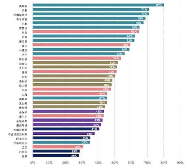 根據(jù)經濟與商業(yè)研究中心(Cebr)和美國高通公司聯(lián)合推出的《城市交通指數(shù)報告》,對世界各大城市在實現(xiàn)零排放方面的現(xiàn)狀進行了評估。報告顯示,亞洲城市在實現(xiàn)零排放方面有著最為遠大的目標以及最具遠見性的措施,但在當前的形勢下面臨著嚴峻挑戰(zhàn)。亞洲各城市在為未來做好準備方面有著極為強勁的表現(xiàn),其目標是通過充分運用無人駕駛電動汽車和公共交通工具創(chuàng)建智能互聯(lián)的城市,但嚴重的空氣污染問題意味著實現(xiàn)零排放仍然任重道遠。