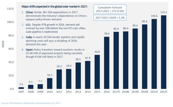 GTM:2017年全球新增太陽(yáng)能裝機(jī)量超85吉瓦