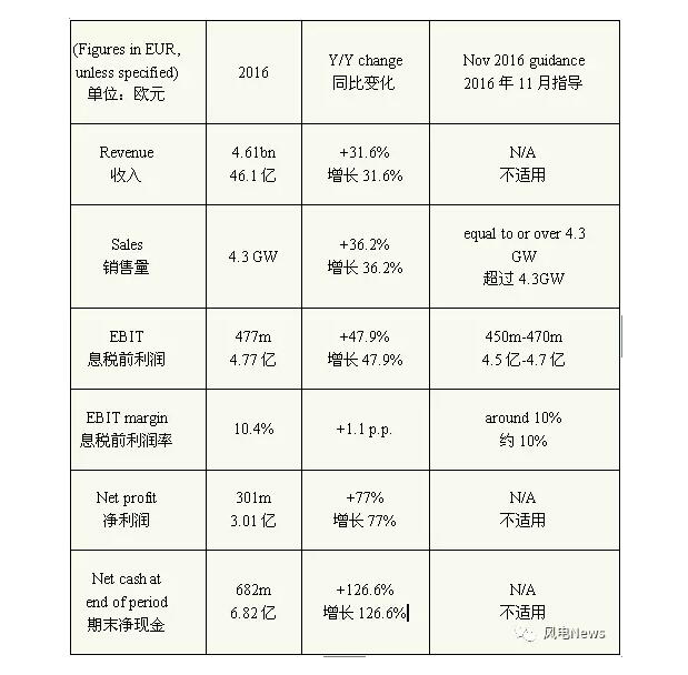 中國(guó)儲(chǔ)能網(wǎng)訊:西班牙風(fēng)電整機(jī)商歌美颯,2016年業(yè)績(jī)創(chuàng)歷史新高,總收入達(dá)到48.7億美元,凈利潤(rùn)激增77%,訂單量高達(dá)4.687GW。