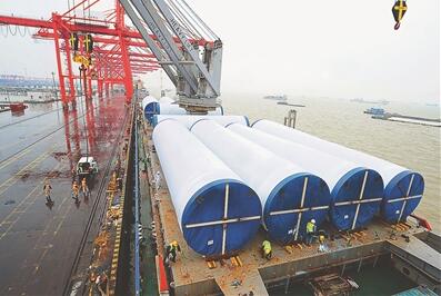 中國儲(chǔ)能網(wǎng)訊:1月18日,滿載著4根32段風(fēng)電塔筒的長航寧海輪在江蘇省太倉港集裝箱碼頭完成吊裝,經(jīng)由太倉港出口泰國林查班港。該塔筒是由中建五洲工程裝備有限公司承建的泰國GNP67.5MW風(fēng)電項(xiàng)目的主要裝備,筒體分為8段,單套重量達(dá)512噸,輪轂高度達(dá)153米,接近世界之最,是亞洲目前最高的風(fēng)力發(fā)電塔筒。