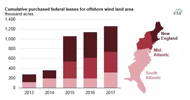 早在2013年,美國海洋能源管理局就首次舉行了海上風(fēng)電場建設(shè)用地出租的商業(yè)化競標(biāo),此次出租的海上風(fēng)電場建設(shè)用地位于羅德島州及馬薩諸塞州海岸線上,總面積達(dá)165000英畝。在這之后,海洋能源管理局又在大西洋海域進(jìn)行了四次競標(biāo)。據(jù)數(shù)據(jù)統(tǒng)計,到目前為止,在聯(lián)邦海域一共有11個商業(yè)化租賃模式的海上風(fēng)電場項目,其中9個都是通過競標(biāo)的方式達(dá)成的。自2013年以來,已經(jīng)累計有一百萬英畝的海洋面積被出租用于海上風(fēng)電場建設(shè)。