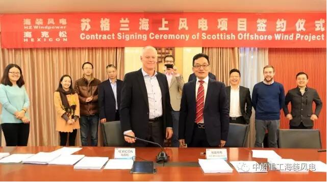 中國儲能網(wǎng)訊:2016年12月22日,海裝風(fēng)電與英國10MW海上浮動平臺風(fēng)電項目業(yè)主HEXICON AB 在重慶簽署供貨合同。公司副總經(jīng)理孟黎及業(yè)主方CEO 安德斯?巴恩分別代表雙方簽字,標(biāo)志著海裝風(fēng)電5MW海上風(fēng)電機組裝備獲得國際市場認(rèn)可、成功布局海外主流海上風(fēng)電市場。
