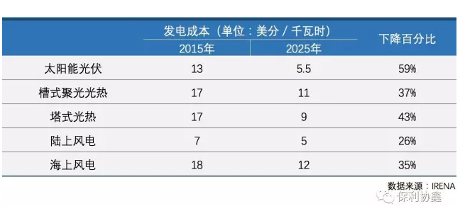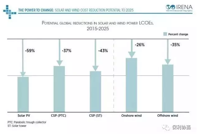 中國儲(chǔ)能網(wǎng)訊:國際可再生能源署近日發(fā)布報(bào)告預(yù)測(cè),到2025年,太陽能光伏、光熱、陸上和海上風(fēng)電成本將大幅度下降。太陽能光伏到2025年將比2015年下降59%,從13美分/千瓦時(shí)降至5.5美分/千瓦時(shí)。這份題為《改變的力量:2025年前太陽能和風(fēng)能成本下降潛力》的報(bào)告指出,在合理的監(jiān)管和政策框架下,2025年之后,太陽能和風(fēng)能的發(fā)電成本仍有望不斷下降。