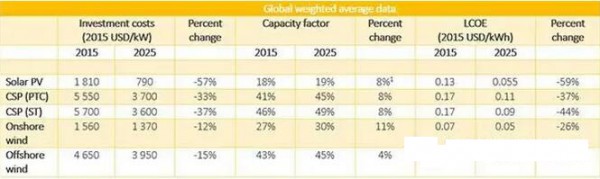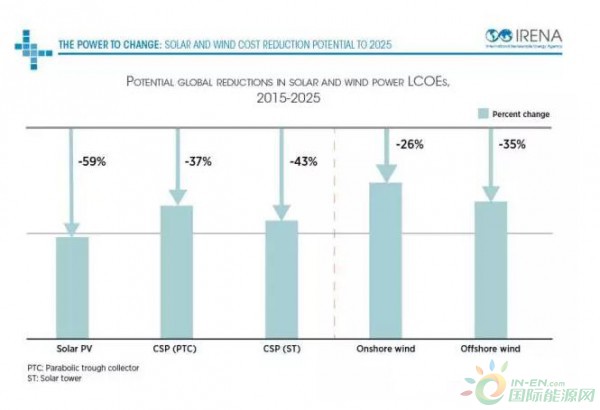 中國儲(chǔ)能網(wǎng)訊:根據(jù)國際可再生能源署剛剛發(fā)布的報(bào)告預(yù)測(cè),光伏、光熱、陸上和海上風(fēng)電成本將大幅度下降: