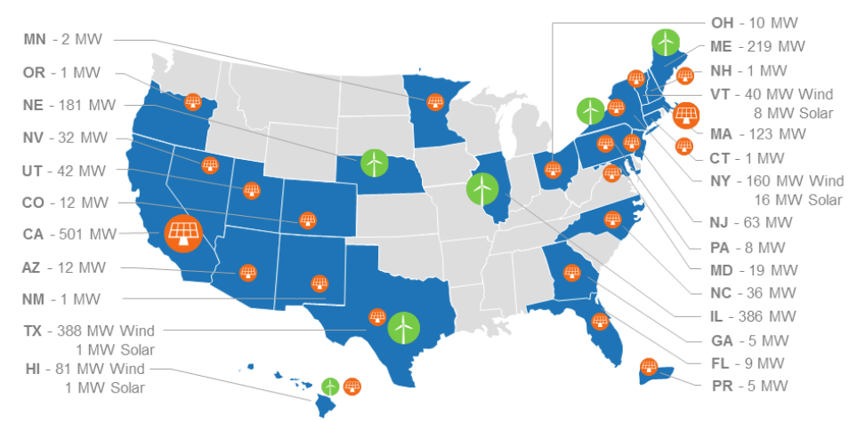 TerraForm Power旗下所擁有的發(fā)電資產(chǎn),到2016年底為止預(yù)估將成長到2,987MW,僅比2015年多出20MW。其中,有1,455MW太陽能發(fā)電資產(chǎn),1,532MW是風(fēng)力發(fā)電資產(chǎn)。風(fēng)力發(fā)電大部分分布于美國,有1,455MW;而太陽能則以美國的909MW與英國的376MW為最多。