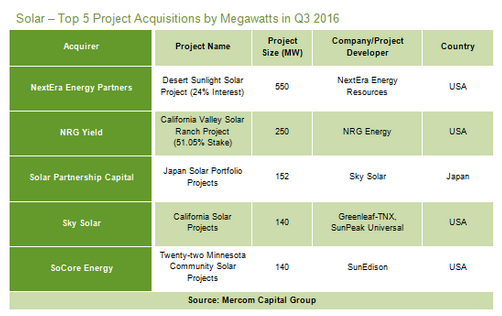 值得注意的是,第三季度,宅用和商用太陽(yáng)能項(xiàng)目融資達(dá)到11億美元,其中,7.6億美元為租賃,3.33億美元為貸款融資。與此同時(shí),今年第三季度,太陽(yáng)能企業(yè)并購(gòu)項(xiàng)目達(dá)到18起,下游企業(yè)占50%,制造業(yè)占27.8%。尤其是SunEdison申請(qǐng)破產(chǎn)保護(hù)后,涉及SunEdison企業(yè)的并購(gòu)交易就達(dá)到4個(gè)。