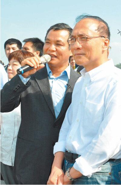 臺(tái)“行政院長(zhǎng)”林全(右)等人視察離岸風(fēng)電示范機(jī)組。記者張?jiān)U洌瘮z影圖片來源:臺(tái)灣《聯(lián)合報(bào)》
