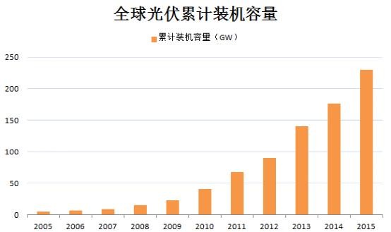 在過(guò)去的10年,全球光伏市場(chǎng)保持高速增長(zhǎng),從2005年5GW到2015年230GW。其中,在前5年光伏市場(chǎng)主要由德國(guó)為首的歐美國(guó)家主導(dǎo)。但在后半年,中國(guó)、美國(guó)和日本后來(lái)居上一躍成為世界前三。根據(jù)ITRPV、IRENA等機(jī)構(gòu)的預(yù)測(cè),全球光伏累計(jì)裝機(jī)容量將在2025年達(dá)到1750-2250GW。這是一個(gè)高達(dá)2.2萬(wàn)億美元的巨大市場(chǎng)。