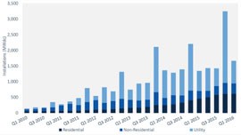 美國非住宅市場今年第二季度經歷了一些限制,主要是由于東北部激勵政策到期,全國凈計量的爭議不斷增長。美國非住宅市場比第一季度增長5%,比去年同期增長50%。
