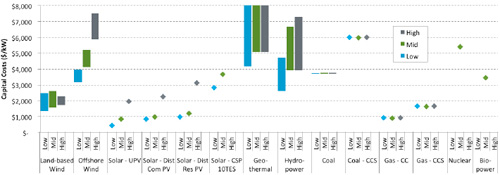 中國儲能網(wǎng)訊:美國國家可再生能源實(shí)驗(yàn)室(NREL)8月31日,公開了現(xiàn)在和將來各類發(fā)電技術(shù)設(shè)備投資估算的調(diào)查結(jié)果“2016 Annual Technology Baseline (ATB)”。