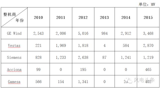中國儲(chǔ)能網(wǎng)訊:2015年,GE和維斯塔斯占美國新增裝機(jī)容量的73%,西門子緊隨其后占14%。