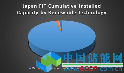 鑒于福島核電事故,日本政府于2012年中旬推出頗具吸引力的FIT政策。雖然FIT政策支持的對象包括太陽能、風(fēng)能、水電、地?zé)岷蜕镔|(zhì)能源等五種可再生能源科技,但太陽能占據(jù)了過去三年22GW總裝機(jī)量的96%。