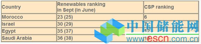 下表列出了中東北非地區(qū)上榜國家的可再生能源市場及光熱發(fā)電市場的詳細(xì)排名: