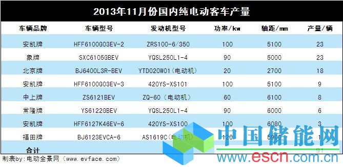 中國儲能網(wǎng)訊:2013年11月份國內(nèi)純電動客車產(chǎn)量91輛,與今年10月份14輛相比,環(huán)比增產(chǎn)不少,但同比去年11月份的300多輛,仍有很大降幅。
