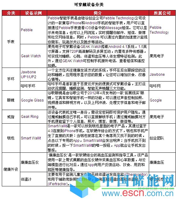 隨著Google Glass(谷歌 眼鏡)、Pebble智能手表、Jawbone Up(卓棒智能手環(huán))等一系列明星產(chǎn)品的橫空出世,可穿戴設(shè)備成為消費電子行業(yè)的新寵兒。從全球市場看,谷歌、蘋果、三星等各大科技廠商均提前布局可穿戴設(shè)備領(lǐng)域,中國國內(nèi)也由百度、盛大等公司牽頭,掀起一場可穿戴革命。目前,可穿戴設(shè)備主要有手表、手環(huán)、眼鏡、戒指、錢包、健康外設(shè)等多種類型。