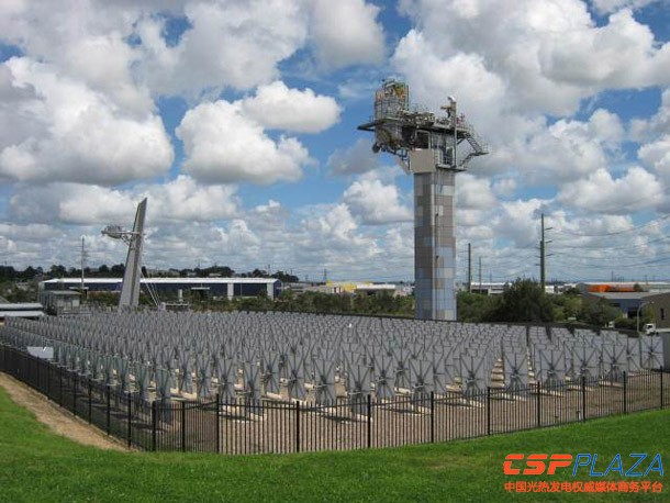 CSIRO在2010年又在上述的示范項目旁邊開始建設(shè)一個1MW熱功率的塔式示范電站,并于2011年建設(shè)完成,這就是采用布雷頓空氣循環(huán)的塔式示范電站。該電站的集熱塔高30米,安裝450面定日鏡。