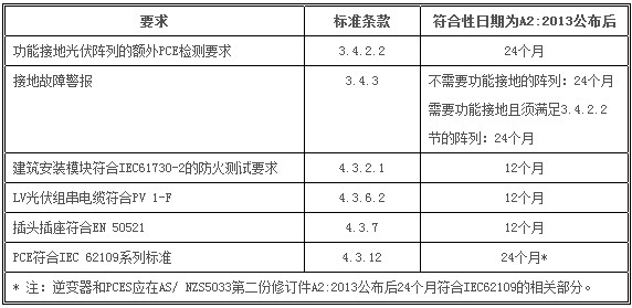 根據(jù)AS/NZS 5033:2012第二份修訂件A2:2013,各項要求的符合性(執(zhí)行)日期見下表: