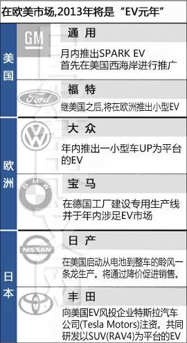 在電動汽車市場,2009年日本三菱汽車推出量產(chǎn)車,2010年日產(chǎn)推出量產(chǎn)車,日本市場處于領(lǐng)跑地位。但是,日本電動汽車市場2012年的銷量僅為1萬3500輛左右,還不到新車銷量整體的0.3%。在預(yù)測今后電動汽車能否在全球普及方面,海外巨頭將涉足的美歐市場的動向正受到各方關(guān)注。