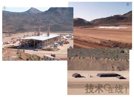 原來(lái)的設(shè)備在供電穩(wěn)定性上存在問(wèn)題。新設(shè)備中引進(jìn)了利用天然氣發(fā)電的設(shè)備(①)。發(fā)電容量為49MW。新制造工藝會(huì)生成水分含量較少的尾礦膏體。將該膏體制成板狀,夾在塑料等中間保存(②)。③是夾有膏體的塑料和土。