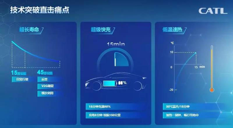 我們通過技術(shù)突破解決了一些重要的痛點:首先,電池使用壽命能做到60萬公里;第二,充電時間縮短到15分鐘充滿80%,充電5分鐘續(xù)航150公里;第三,低溫速熱。冬天零下二三十度的時候,一般電動車的續(xù)航只有夏天的60%,剩下40%的電放不出來。我們發(fā)明一個技術(shù)叫低溫速熱,運用電池本身低溫沒放出來的能量自我加熱,大概用7%左右的能量可以把電池從-20度加熱到+20度。加熱后,冬天的續(xù)航比夏天差7%-10%左右,而且費用不會增加。