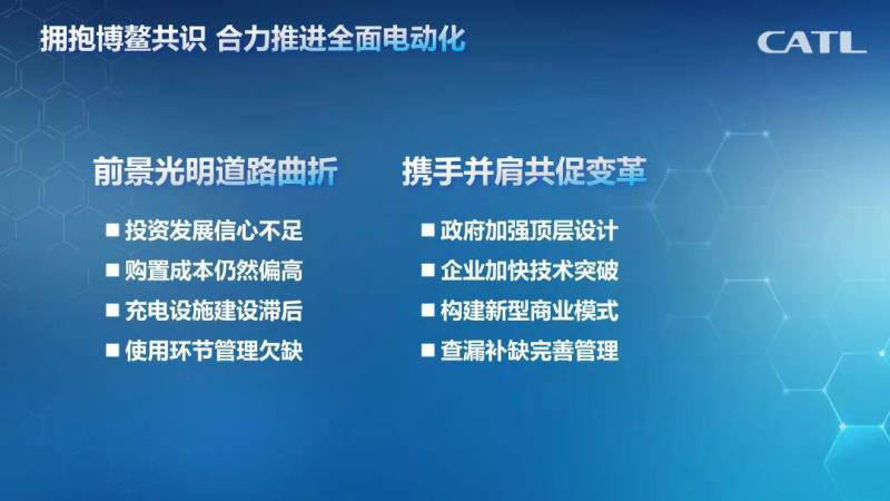 汽車和交通行業(yè)作為能源消耗和溫室氣體的主要貢獻(xiàn)者之一,全面電動(dòng)化是必然趨勢,但當(dāng)前仍面臨很大挑戰(zhàn),主要體現(xiàn)在整車購置成本仍然偏高、產(chǎn)業(yè)生態(tài)體系有待完善、消費(fèi)者認(rèn)知還存在不足等??梢哉f是前景光明但道路曲折。