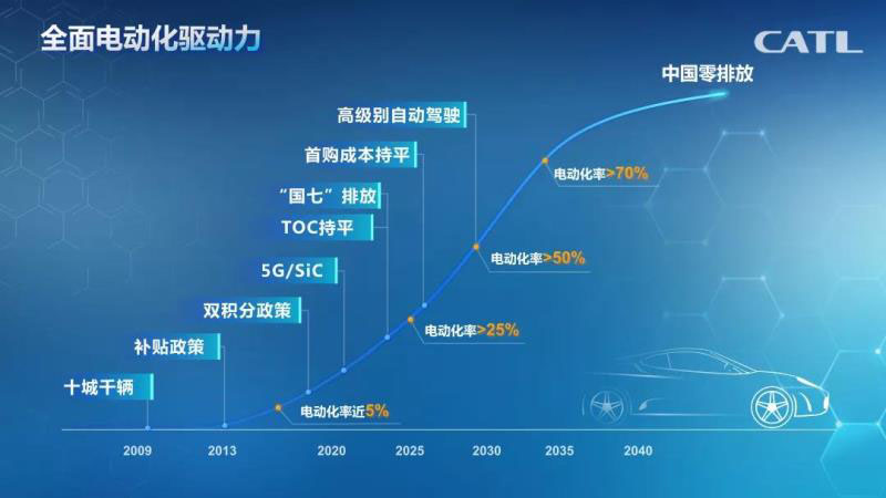 我們有這么幾個(gè)關(guān)鍵時(shí)間點(diǎn)的判斷:2025年之前,純電動(dòng)汽車全生命周期持有成本可低于燃油車,進(jìn)入快速發(fā)展階段;同時(shí),隨著燃油車排放法規(guī)的嚴(yán)格趨勢,2030年之前,首次購置成本開始低于燃油車,拐點(diǎn)到來。在2035年,我們的判斷電動(dòng)化率會(huì)大過70%。因?yàn)榈?025年,基本電動(dòng)車比燃油車更具有經(jīng)濟(jì)性,市場驅(qū)動(dòng)會(huì)非常好。2040年之前,除一些特殊應(yīng)用領(lǐng)域,基本全面實(shí)現(xiàn)電動(dòng)化。