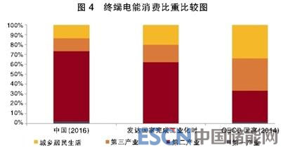有人認(rèn)為單位GDP能耗指標(biāo)方面我國(guó)與發(fā)達(dá)國(guó)家相比還有較大差距,但這種差距在能源電力生產(chǎn)領(lǐng)域以及鋼鐵、有色、建材等領(lǐng)域強(qiáng)度節(jié)能已經(jīng)幾無(wú)空間,降低這個(gè)復(fù)合性指標(biāo)的值,要在“分母”上下功夫,即在經(jīng)濟(jì)結(jié)構(gòu)上下功夫,而不是在分子上持續(xù)加大投入實(shí)施節(jié)能改造(見圖4)。
