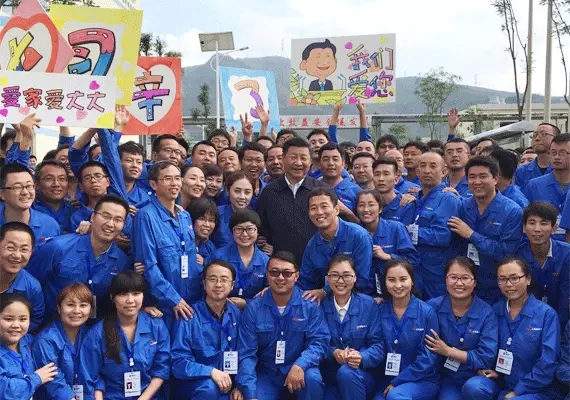當(dāng)習(xí)總書記走出101廠房,看到列隊在廠房兩旁的300名職工時,高興地說道:“年輕人真多啊。”伴隨著大家雷鳴般的掌聲,一句句“主席,您好”、“總書記,您辛苦了”、“習(xí)主席,我們愛您”,習(xí)總書記向大家揮手致意,與廣大職工一一握手。隨后,習(xí)總書記與大家親切合影留念。