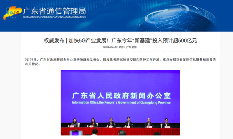 中國儲能網(wǎng)訊:在近日廣東省政府新聞辦舉辦的第49場新聞發(fā)布會上,廣東省工業(yè)和信息化廳副廳長楊鵬飛透露,目前,廣東正加快發(fā)展以5G為代表的新一代信息技術(shù)和新型信息基礎(chǔ)設(shè)施,2020年力爭新建6萬座5G基站;進(jìn)一步完善鄉(xiāng)村信息基礎(chǔ)設(shè)施,推動個人、家庭、中小企業(yè)等網(wǎng)絡(luò)提速提質(zhì)降費,打好信息服務(wù)和消費網(wǎng)絡(luò)基礎(chǔ);預(yù)計2020年廣東以5G和數(shù)據(jù)中心為代表的新型信息基礎(chǔ)設(shè)施投資將超過500億元。