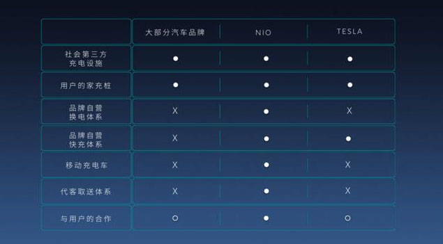 上圖為 NIO 與其他品牌在補(bǔ)能方式上的對(duì)比