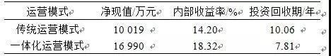 表1傳統(tǒng)運(yùn)營(yíng)模式和一體化運(yùn)營(yíng)模式的成本收益