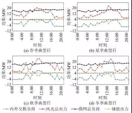 圖8為四季典型日微網(wǎng)風(fēng)光出力和負(fù)荷曲線。