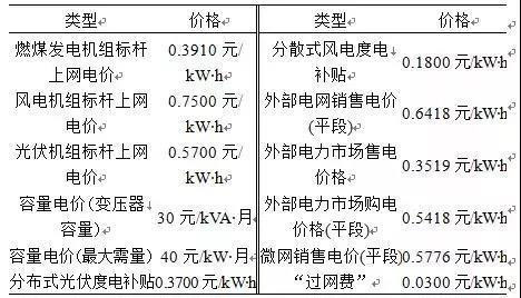 未參與電力市場(chǎng)前,微網(wǎng)內(nèi)部分布式能源上網(wǎng)電量以當(dāng)?shù)厝济喊l(fā)電機(jī)組標(biāo)桿上網(wǎng)電價(jià)結(jié)算,外購(gòu)電量以目錄銷售電價(jià)(考慮峰谷分時(shí))結(jié)算。
