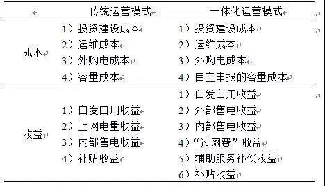 一體化運(yùn)營(yíng)模式成本包括投資建設(shè)成本、運(yùn)維成本、外購(gòu)電成本以及自主申報(bào)的容量成本,收益包括自發(fā)自用收益、外部售電收益、內(nèi)部售電收益、“過網(wǎng)費(fèi)”收益、輔助服務(wù)補(bǔ)償收益和補(bǔ)貼收益。